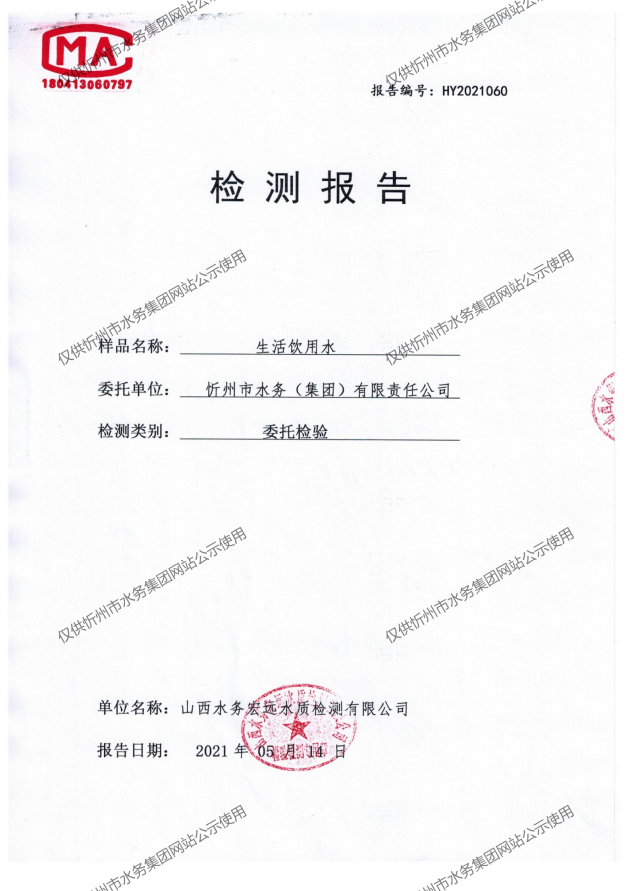 忻州城區(qū)公共供水水源水、出廠水、管網(wǎng)水、管網(wǎng)末梢水2021年5月份水質(zhì)信息公示